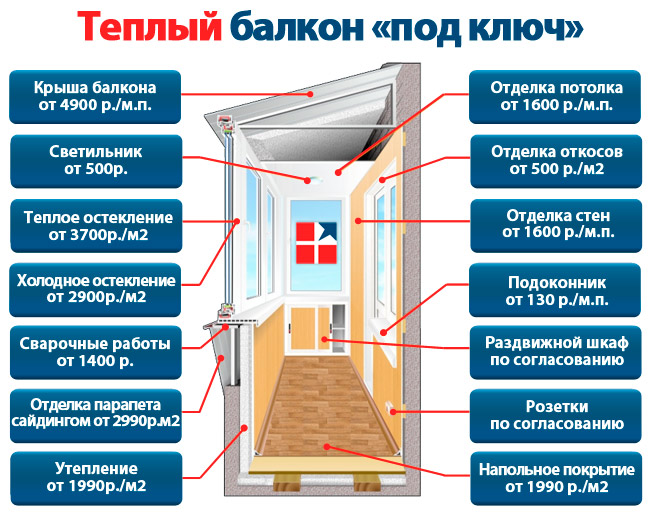 Цена остекления балкона зависит от размера балкона или лоджии, системы открывания, от применяемых в производстве профилей материалов, фурнитуры, стекол, стеклопакетов, а также схемы установки. При заказе балкона «под ключ» к стоимости остекления добавляется стоимость внешней и внутренней отделки, утепления и электрики.